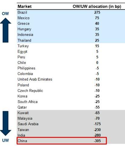 That’s still unlikely to meaningfully address the fact China is still the most U/W market for EM funds (active only)