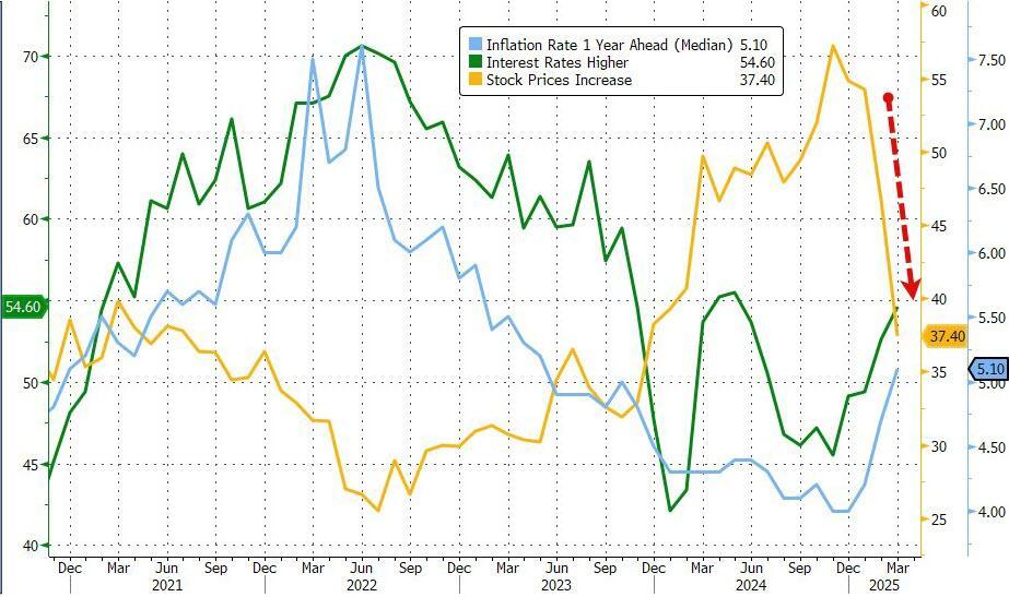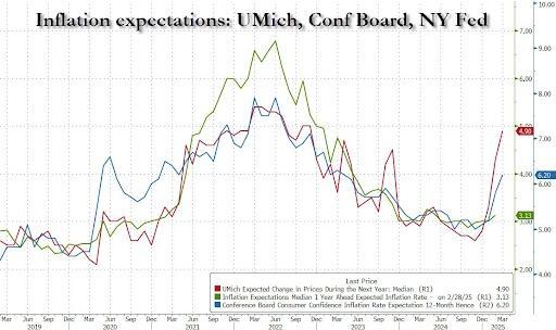 Meanwhile, average 12-month inflation expectations rose again - from 5.8% in February to 6.2% in March - as consumers remained concerned about high prices for key household staples like eggs and the impact of tariffs... still jumping less than the chaos monkeys at UMich...