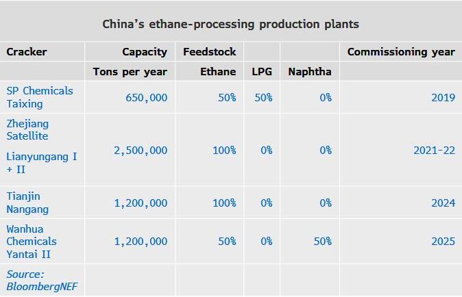 About half of all US ethane exports go to China, where it is used by the petrochemical industry. China’s ethane cracking capacity is dwarfed by its capacity to process naphtha and propane, but almost all of its ethane imports come from the US. The restrictions will have a significant impact on the Lianyungang and Tianjin plants, owned by Satellite Chemical, Sinopec and INEOS. SP Chemicals, a Singapore-based producer, sources most of its feedstock from Enterprise Products Partners.