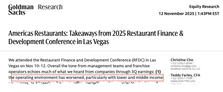 Goldman analysts led by Christine Cho attended the Restaurant Finance & Development Conference (RFDC) in Las Vegas earlier this week. The conference drew restaurant executives and founders, franchisees and multi-unit operators, private-equity investors and lenders, industry consultants, and other stakeholders across the broader restaurant ecosystem.