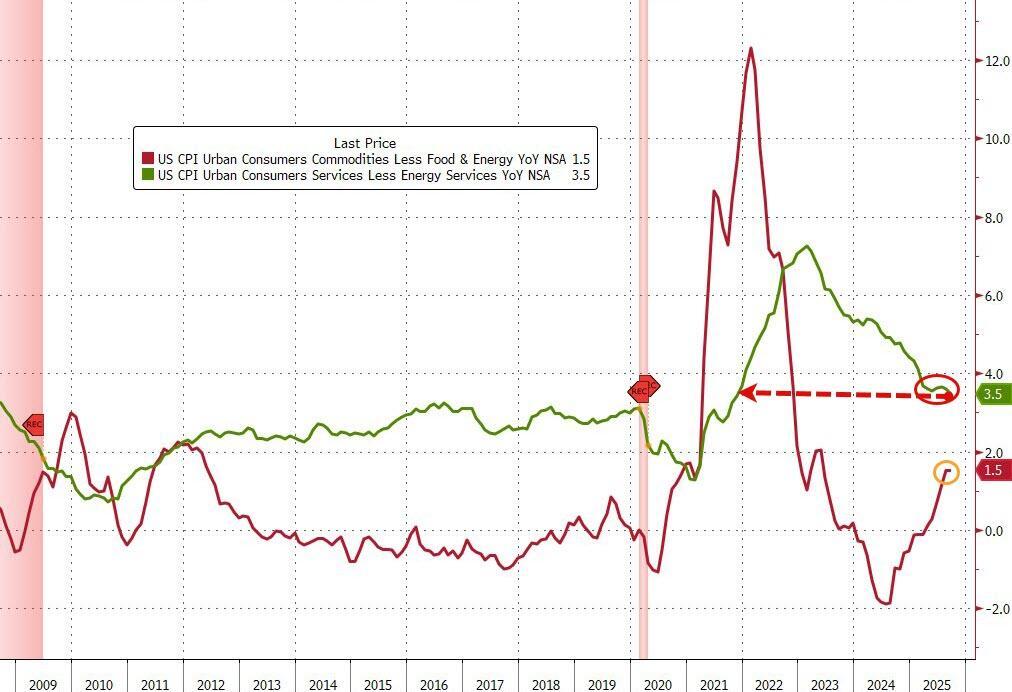 Summing up September's (delayed) data, Services inflation slowed to its weakest since Nov 2021 and Goods inflation was flat at +1.5% YoY...
