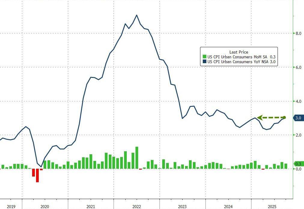 ...rising 0.3% Mom (vs +0.4% exp), with the YoY print at 3.0% (below expectations of +3.1% but higher than the 2.9% YoY print in August).