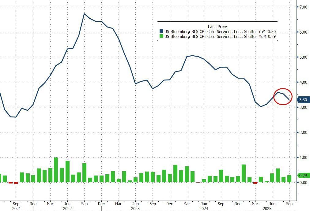 Finally, SuperCore CPI (Services Ex-Shelter) also saw its YoY print slow to +3.30% (the slowest since May)...