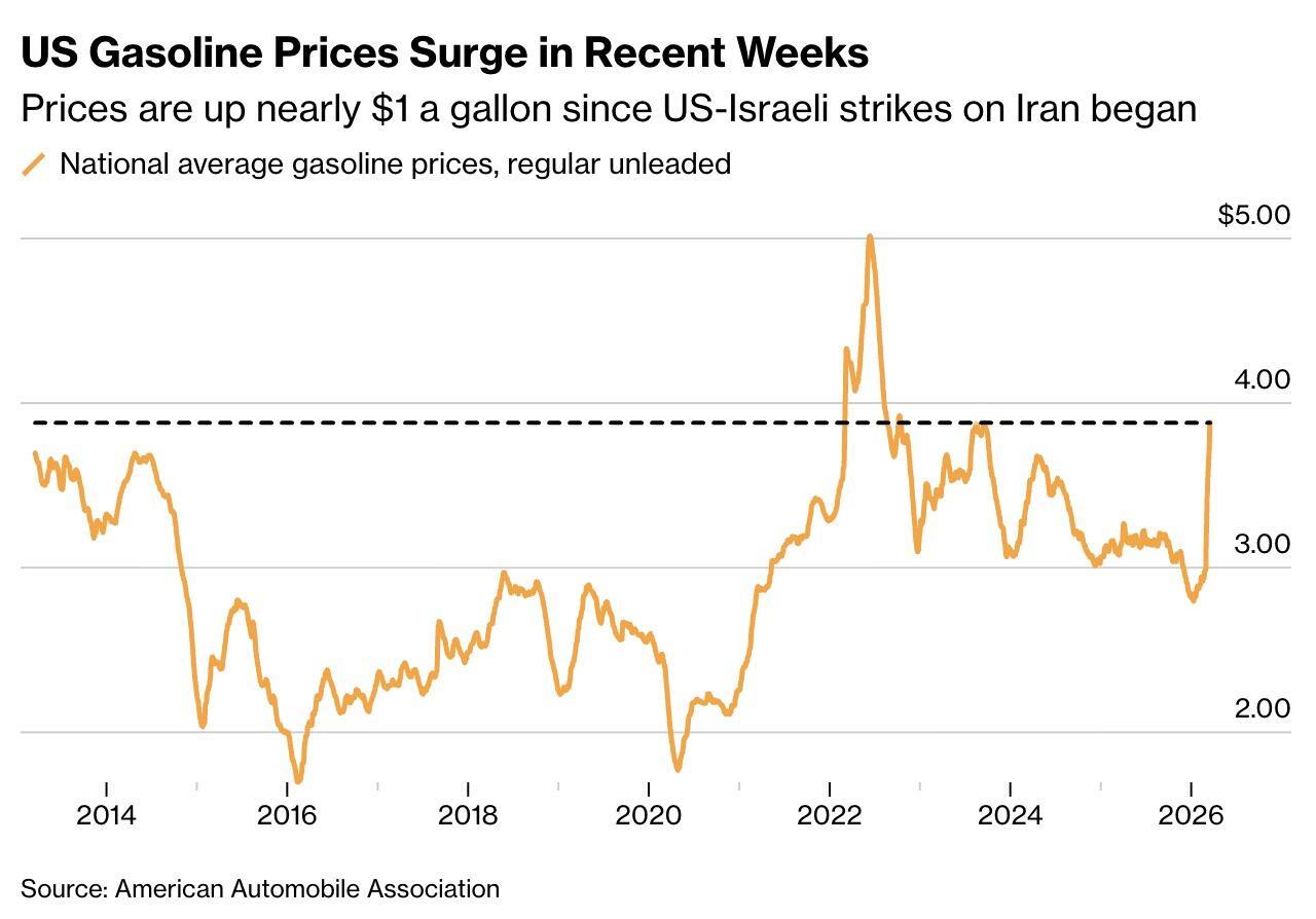 Bloomberg writes that lower- and middle-income households are being hit hardest, since fuel makes up a larger share of their budgets. Families are also seeing costs rise beyond gas, from groceries to basic goods, and are adjusting by cutting extras and planning purchases more carefully.
