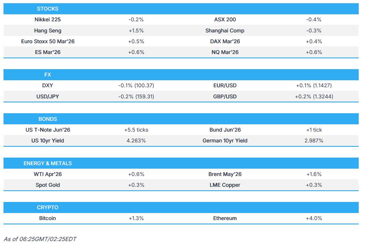 - US stocks saw further pressure on Friday as geopolitics continued to dominate, hitting risk sentiment. Sectors were more split with haven sectors (Utilities and Staples) outperforming alongside Energy, while Tech, Materials and Communications were the notable laggards. Oil prices saw further gains with Brent settling above USD 100/bbl for the second consecutive session despite more reports of Indian tankers sailing through the Hormuz. Aside from geopolitics, the focus was on a plethora of US data. January PCE was largely in line, aside from Core Y/Y, while the 2nd estimate of Q4 GDP was revised to show growth of just 0.7%, below the initial estimate of 1.4%. Durable Goods disappointed, while JOLTS offered a glimmer of hope, but analysts did highlight that there were signs of AI disruption. The UoM report saw a slight beat with mixed components and mixed inflation expectations.