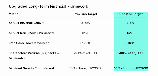 Chairman and CEO Michael Dell and other members of the executive leadership team will announce a new "long-term financial framework" that forecasts sales to rise at a rate of 7% to 9% annually for the next four years, while earnings per share, excluding some items, will increase 15% or more. The previous forecast, which was made in 2023, had an estimated revenue growth of 3% to 4% and adjusted EPS of 8% or better.