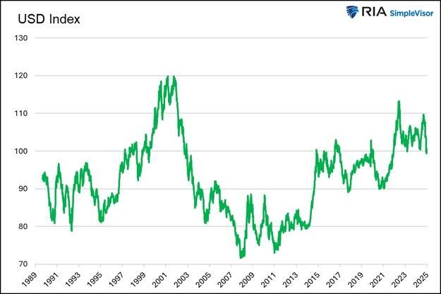 Even today, with “runaway” deficits making headlines daily, the dollar remains in the upper range of the last 35 years.