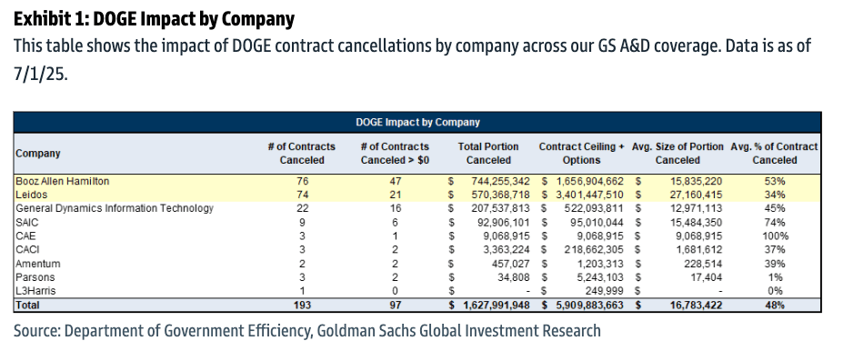 Notably impacted are consulting firms Booz Allen Hamilton (BAH) and Leidos (LDOS), with several high-value contracts terminated, including a $310 million hypersonic ISR project for LDOS and multiple contracts for BAH totaling over $130 million.