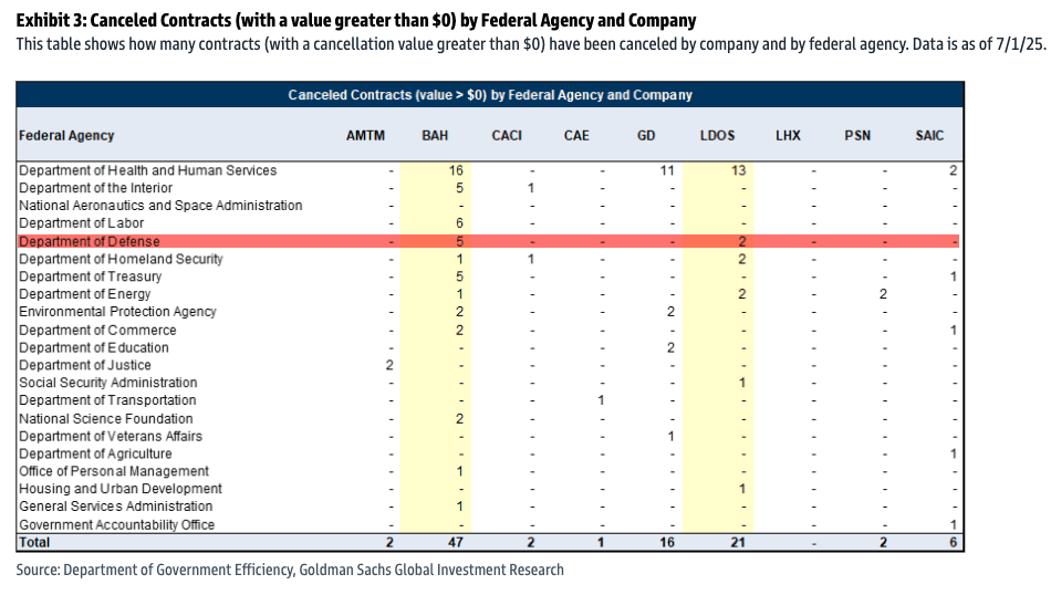 On Monday, a team of Goldman analysts led by Noah Poponak told clients that the team of the Department of Government Efficiency (DOGE) at DoD is quietly ramping up contract cancellations. Yes, the DoD—the mecca for bloated budgets and opaque spending—is now the target of DOGE's slash-and-burn operations. That news alone might have Deep Staters and their Beltway contractor buddies on edge through summer.