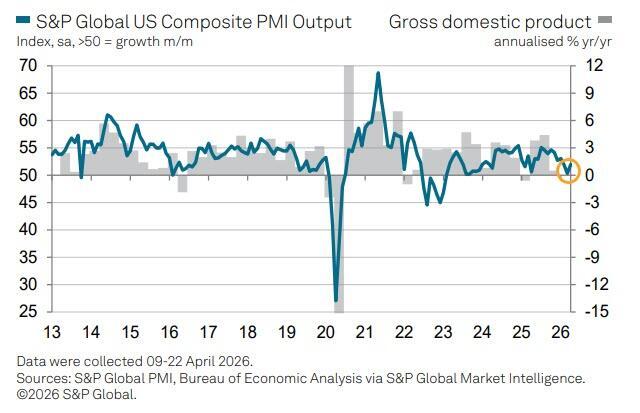 US business activity growth recovered slightly in April having slowed to near-stagnation in March following the outbreak of war in the Middle East. However, the overall pace of expansion remained subdued, most notably in the services economy where demand faltered.