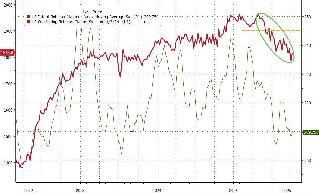 Despite 'Survey' Sadness, Jobless Claims Slide Near Historic Lows
