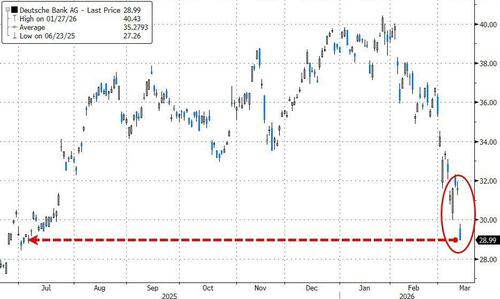 Deutsche Bank shares are down 8% on the day (the biggest drop since Liberation Day , last April) to their lowest since July 2025...