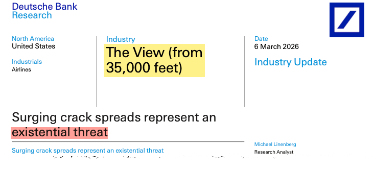 Deutsche Bank Warns Energy Shock "Existential Threat" To Airlines, May Force Some To Ground Fleets