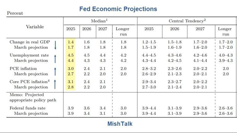 Yesterday, I noted Fed Projects Higher Unemployment and Higher Inflation Citing Tariffs