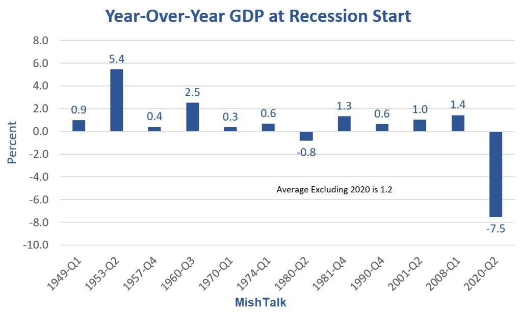 Year-Over-Year GDP at Recession Start