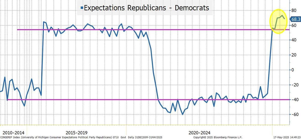 Given the extreme divergence, do Republicans buy the dip far more than Democrats? Is that too crazy to be even possible? If true, does the wealth effect affect one party more than the other?