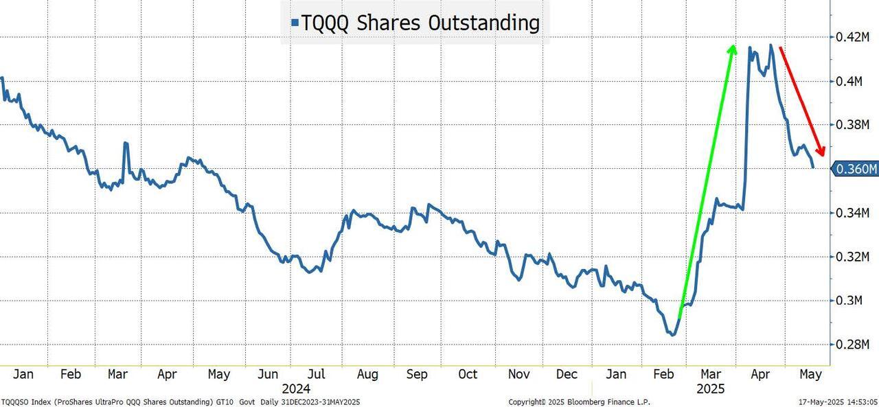 Since that was the case at the lows, it is worth noticing that retail (TQQQ as a 3x daily leveraged Nasdaq 100 ETF is geared towards aggressive retail traders) has been taking profits here.