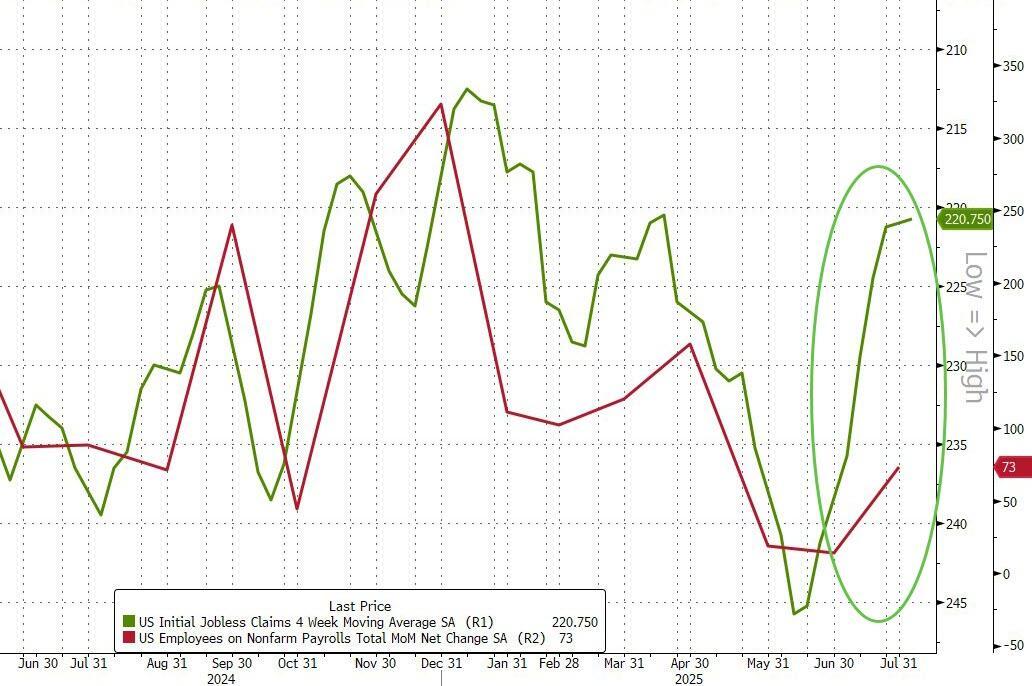 But if we zoom in, the relationship is tighter, BUT claims data suggests we will see significant UPWARD revisions for payrolls soon... that will be awkward for some!