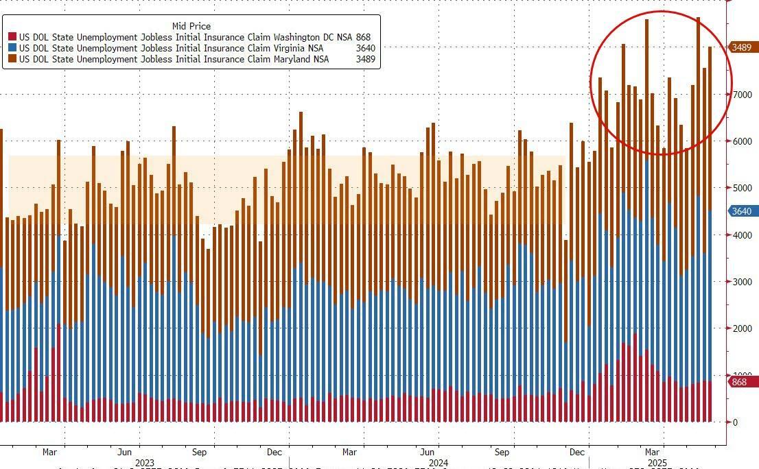 And initial claims remain elevated in the DC, VA, MD region...