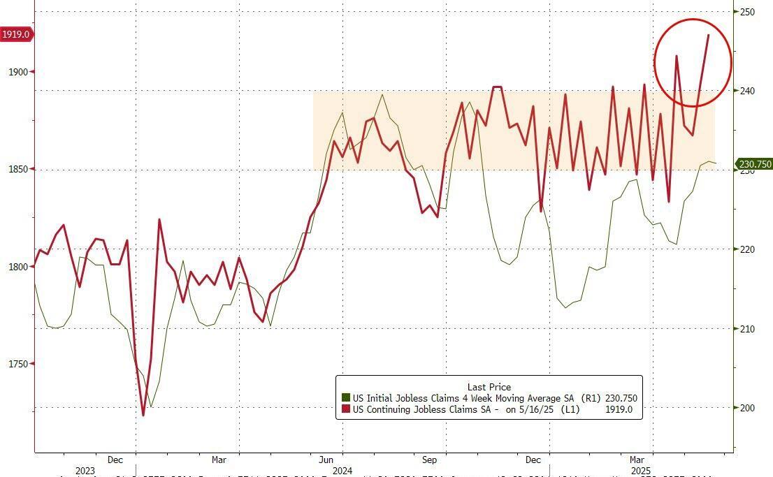 Continuing claims rose further to 1.919 million Americans - the most since November 2021...