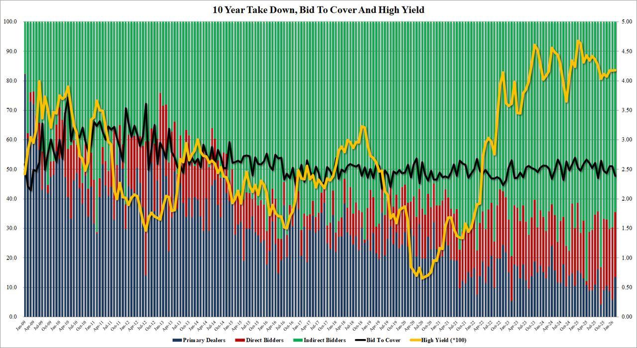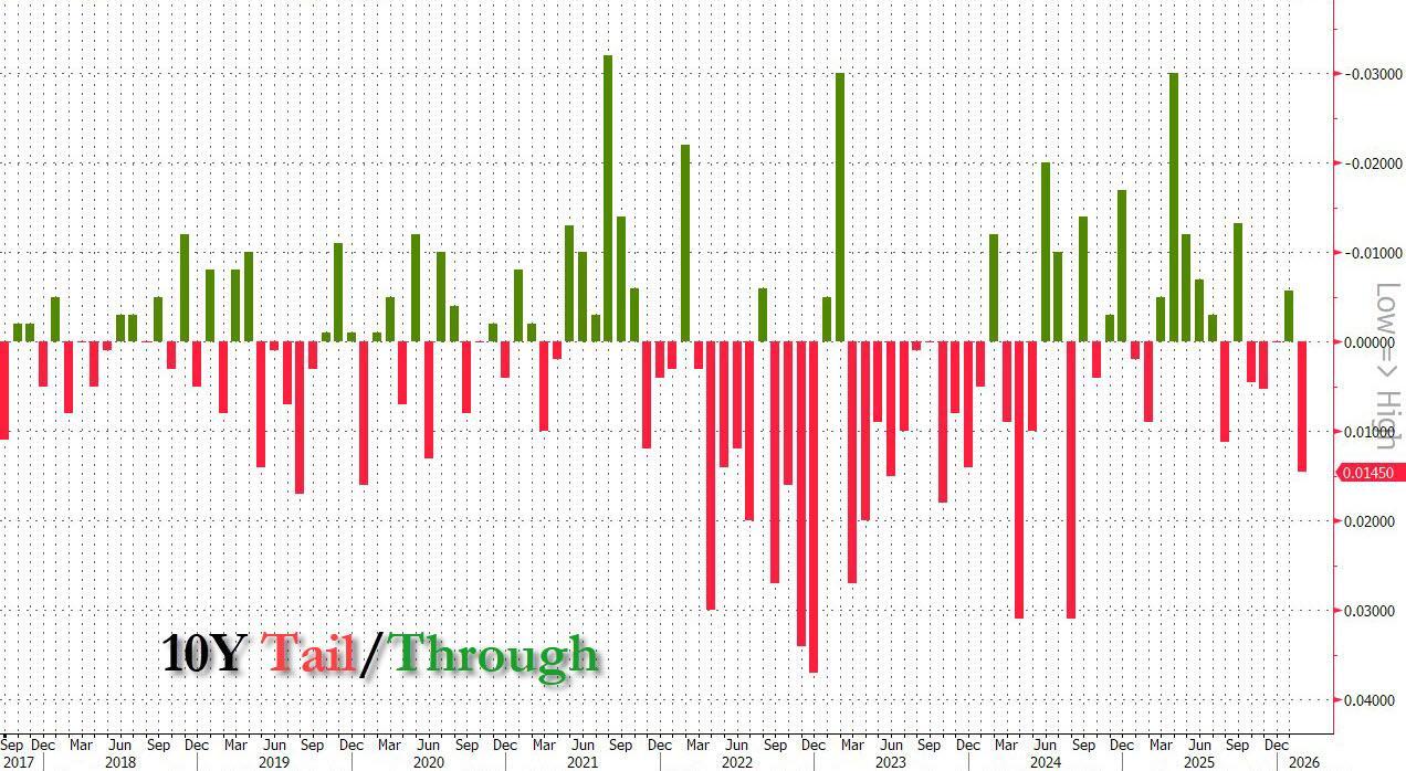Dreadful 10Y Auction Sees Biggest Tail Since 2024, Foreign Demand Slides