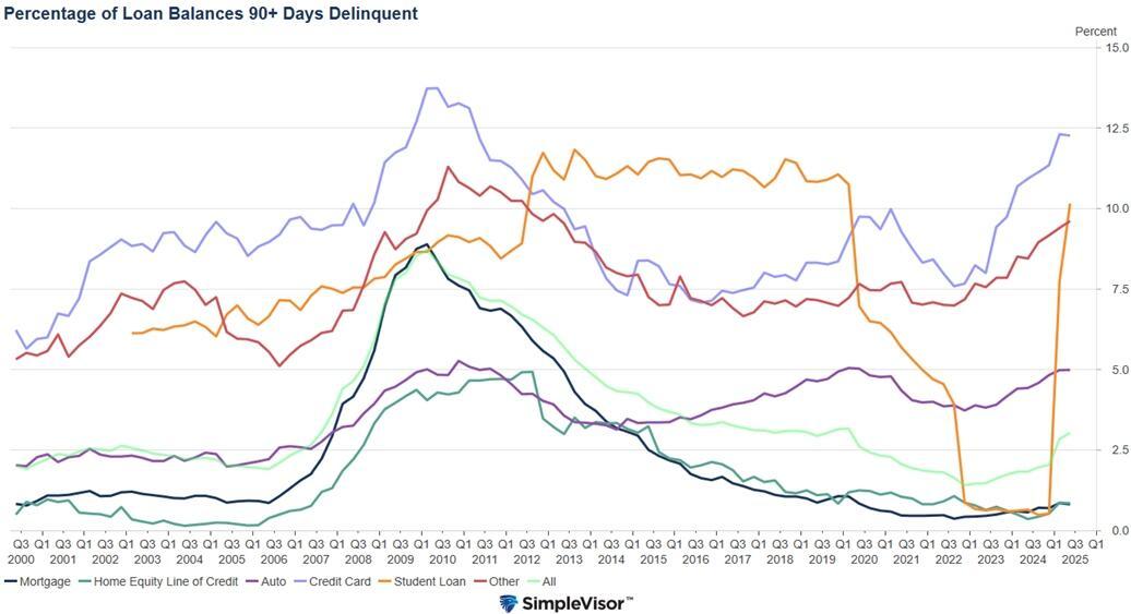 Both articles’ tone was analytical but precise: the economy has not escaped danger. Leading economic indicators flash warning signs, from the Conference Board’s LEI to the ISM Manufacturing Index. Credit conditions remain tight with delinquencies on the rise, and employment trends, while stable on the surface, have started to weaken in rate-sensitive areas.