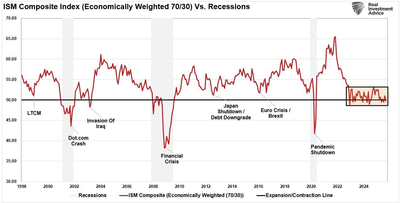 While there is certainly risk that “hopes” are disappointed, as investors, we must consider the possibility that an economic reacceleration comes to fruition. Such could leave overly defensive investors underexposed to equities, creating significant opportunity costs. Currently, many investors remain positioned for stagnation or slow deterioration. While that positioning aligns with the data, the yield curve, and historical patterns, the markets rarely reward consensus thinking. If reacceleration unfolds, it will catch many investors with an underweighted risk exposure.
