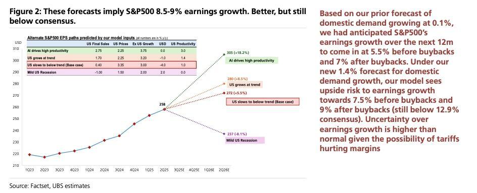 As UBS notes, they expect stronger earnings growth going into 2026, supported by stronger economic growth.