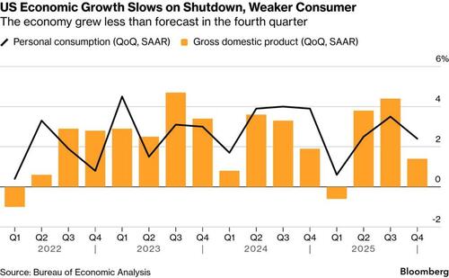 According to the Bureau of Economic Analysis’s advance estimate, real Gross Domestic Product expanded at an annualized rate of just 1.4%, well below expectations and a steep drop from the 4.4% pace in the third quarter. However, the record-long federal government shutdown, which ran from October 1 through November 12, subtracted roughly 1 full percentage point from growth, as federal outlays plunged 16.6%.