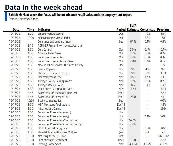 A slew of US data is due out this week as officials continue to make good the absence caused by the government shutdown. The market median points to a 50K gains in Tuesday’s November non-farm payrolls release combined with an unemployment rate of 4.5%. The data follow last week’s robust US export numbers, which had positive implications for US Q3 GDP. Tomorrow will also bring US October retail sales data and December PMIs. Other US releases this week include the December Philly Fed index, initial claims and November existing home sales. Plenty of Fed speakers are also slated this week. UK releases include Labour data and the November CPI inflation report. The latter is expected to show further signs in easing in UK price pressures, which would solidify market expectations for a BoE rate cut on December 18. UK November retail sales are due at the end of the week. PMIs plus Germany’s ZEW and IFO releases will ensure a European theme is included in this week’s data surge, while Canada will see a fresh CPI inflation report. In Australia, PMI data and consumer confidence numbers are due.
