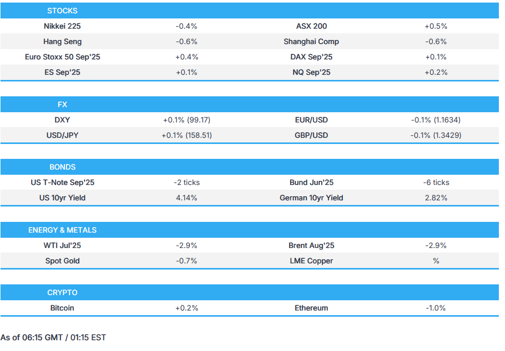 - ASX 200 continued its trend higher as mining and materials names advanced, supported by fresh ATHs in metals and news that Rio Tinto and BHP are collaborating on iron ore extraction in the Pilbara.