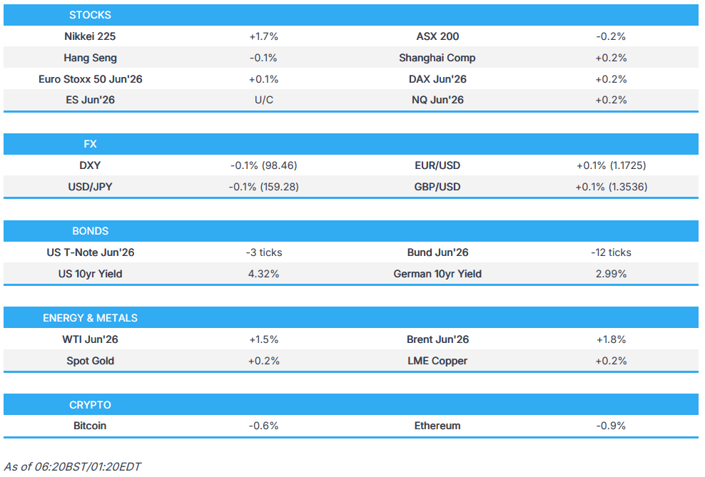 - APAC stocks benefited from reporting around the Iranian communication, both European & US futures point to a contained open.