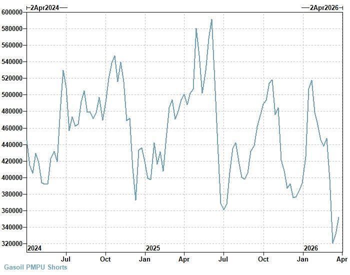 According to Commitment of Traders, Gasoil Producer, Merchant, Processor, and User (PMPU) shorts tumbled -$13bn during February 24th - March 10th.