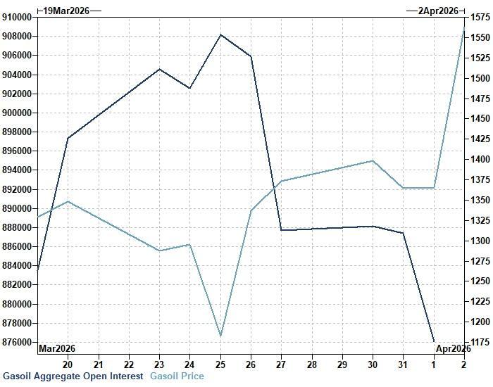 Over March 24th - April 1st, which included the administration's initial signaling for an end to the fighting, Gasoil aggregate open interest shed -$3.7bn.