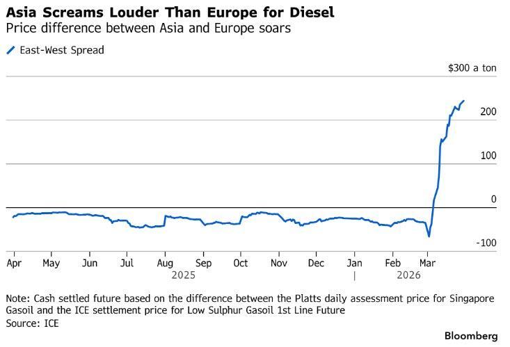 Nevertheless, Europe’s diesel futures rose to the highest level since 2022, as the Iran war hits supply of the fuel that powers the global economy.