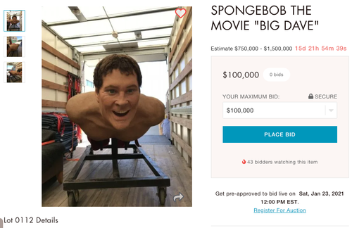 KITT is not the only movie item put up for auction by Hasselhoff. A larger than life-size replica of the actor from 2004's "SpongeBob SquarePants Movie" has a starting bid of $100k, though there are no bidders.