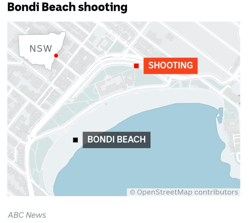 At approximately 6:47 p.m. local time, two individuals opened fire on crowds at Bondi Beach in Sydney, Australia, where over 1,000 people had gathered for a Jewish celebration of the first day of Hanukkah.