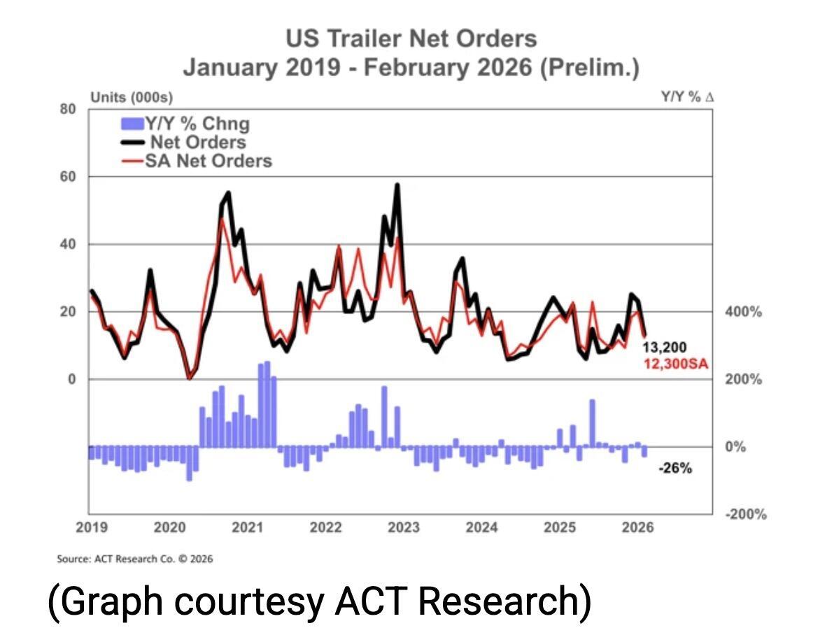February Net Trailer Orders Down 43% As Bookings Fall 26%