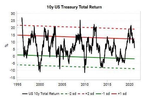 Treasuries are not as overbought as they were last year, but they are still above “fair value”, and an overshoot to being oversold is conceivable.