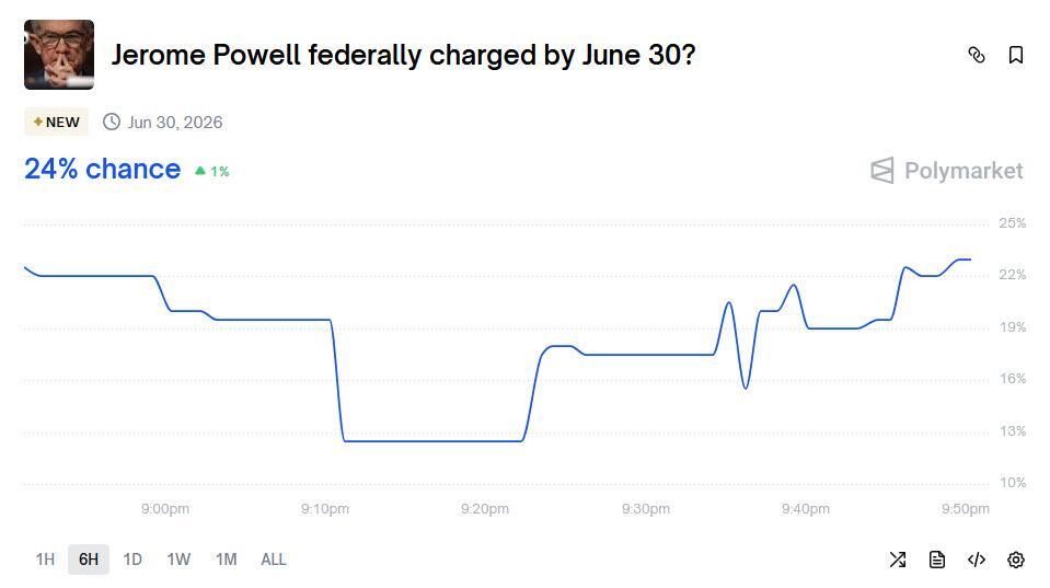 Or maybe not and it's all for show: according to the latest Polymarket odds, the probability of Powell being federally charged by June 30 - a date that is beyond Powell's chairman tenure - is only 18%.
