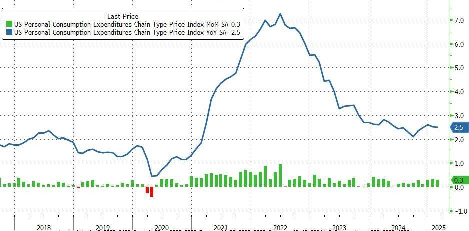 Disappointingly sticky is the phrase that comes to mind, while the headline PCE rose 0.3% MoM as expected with the YoY price change slowing modestly...
