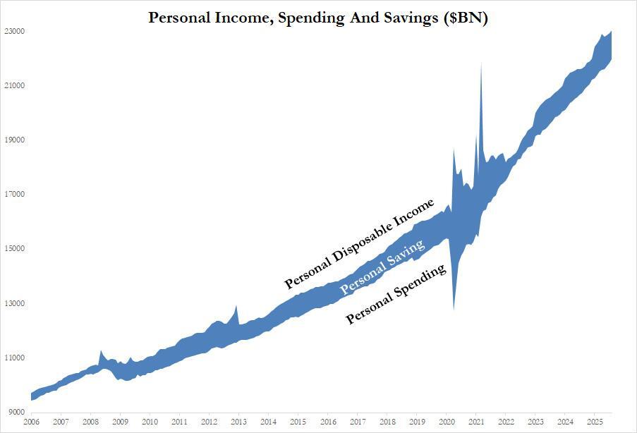 Fed's Favorite Inflation Indicator Shows No Sign Of Runaway Tariff Costs, As Savings Rate Slides