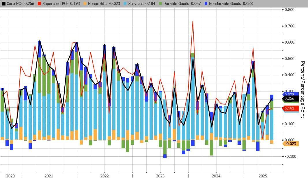 Headline PCE rose 0.3% MoM (as expected) and +2.6% YoY (hotter than expected)...