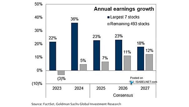 As shown, Wall Street currently expects the bottom 493 stocks to contribute more to earnings in 2026 than they have in the past 3 years. This is notable in that, over the past three years, the average growth rate for the bottom 493 stocks was less than 3%. Yet over the next 2 years, that earnings growth is expected to average above 11%.