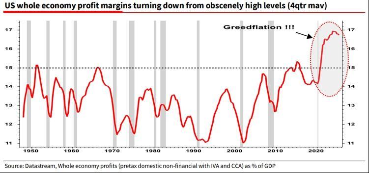 Notably, all this is occurring at a time when the entire economy’s profit margins have peaked and may potentially be turning lower.