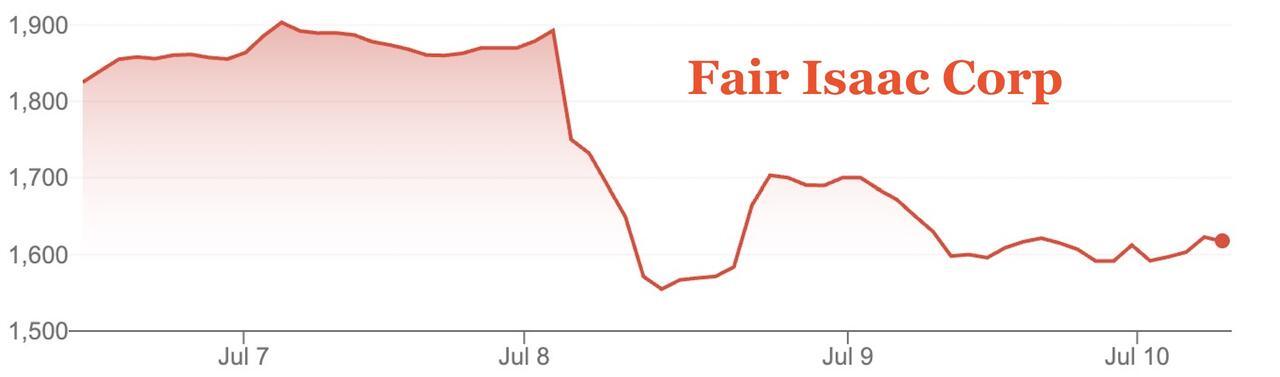 FICO shares plunged as much as 19% during the day on Tuesday before recovering late in the session to close down nearly 9%.