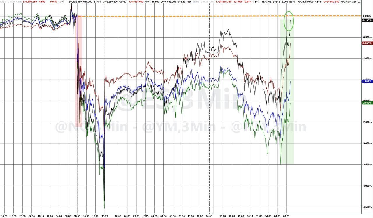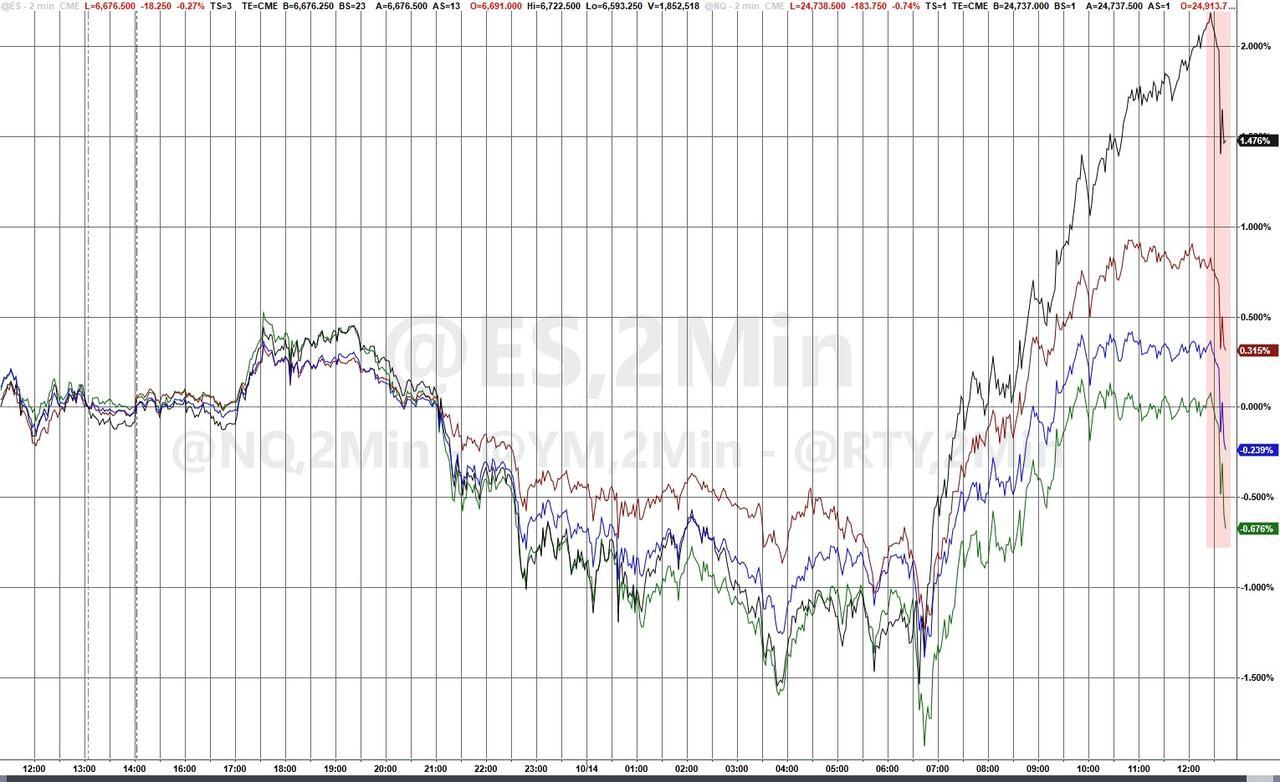 Update (1540ET): Just when you thought it was safe to buy the f**king dip, President Trump takes to social media and spoils the day's gains again...