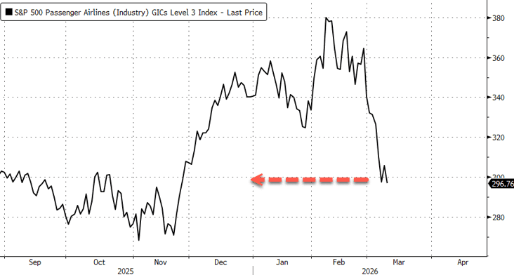 The S&P 500 Airlines Index has erased much of the November-to-February gains.
