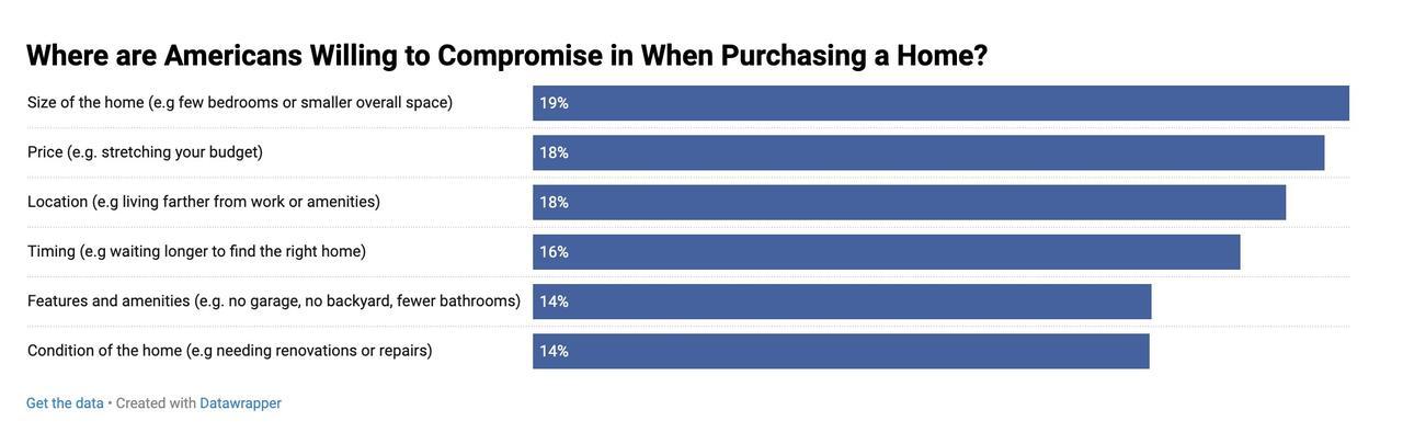 Financial strain led many buyers to make compromises. Nearly one in five settled for smaller homes, less desirable locations, or properties needing repairs. Stretching the budget was another common trade-off. Baby Boomers were most willing to go over budget, while Gen Z was most likely to compromise on location.