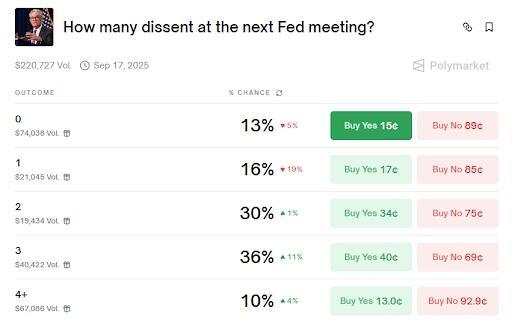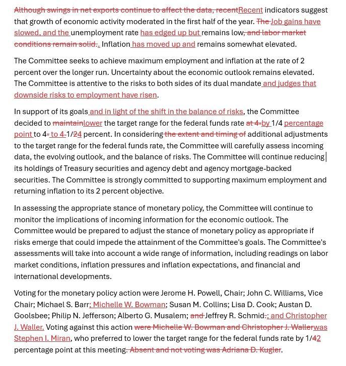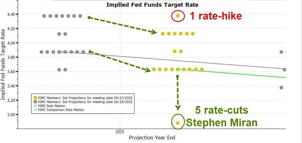There was only one dissenter, newly appointed Stephen Miran who wanted a 50bps cut.